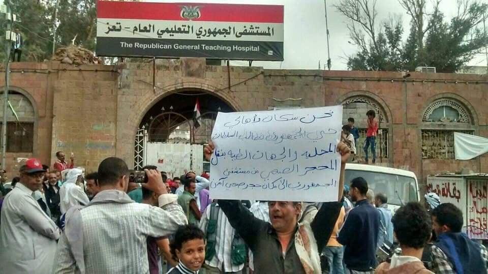 في سياق متصل، نفذ أبناء حي الجمهوري وقفة احتجاجية لمطالبة المحافظ ومكتب الصحة بنقل مركز العزل الصحي لفيروس كورونا من المستشفى الجمهوري إلى منطقة خالية خارج المدينة جراء مخاوفهم من انتقال الوباء لسكان الحي.