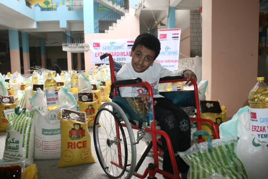 بتمويل من مؤسسة GAYRET التركية فجر الأمل توزع السلل الغذائية على المعاقين والنازحين في #تعز