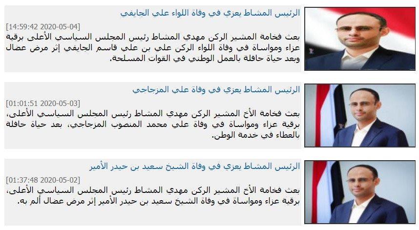 تكشف التعازي التي يبعثها مهدي المشاط رئيس ما يسمى "المجلس السياسي الأعلى" التابع للحوثيين مدى انتشار وباء كورونا في مناطق سيطرتهم.
