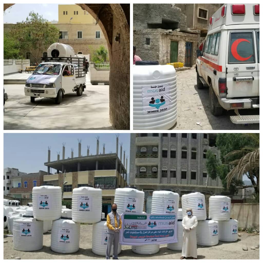 ضمن حملتها لمواجهة فيروس كورونا وتحت شعاربالعطاءيزول البلاء وبتمويل مؤسسة مساعد بألمانيا وزعت مؤسسة فجر الأمل الخيرية للتنمية الإجتماعية 13 خزان مياه شرب لمراكز عزل مرضى كورونابمستشفيات محافظة تعز كما تكفلت المؤسسة بتعبئة هذه الخزانات لمدة شهر.