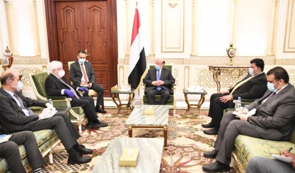 وقال المبعوث الأممي عبر تويتر، إنه ناقش مع الرئيس، مسودّة الإعلان المشترك الرامي إلى التوصّل إلى وقف إطلاق نار شامل في اليمن وكذا اتفاق على تدابير إنسانية واقتصادية واستئناف عملية السلام".