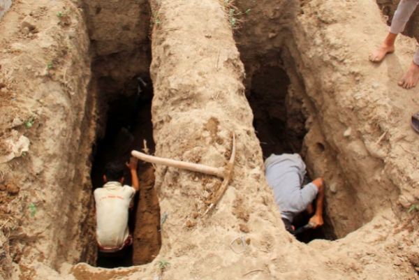 في مدينة تعز، قال عمال المقبرة هذا الأسبوع إنهم اضطروا إلى استئجار حفارات ميكانيكية لأن حفاري القبور لم يتمكنوا من مواكبة الطلب.