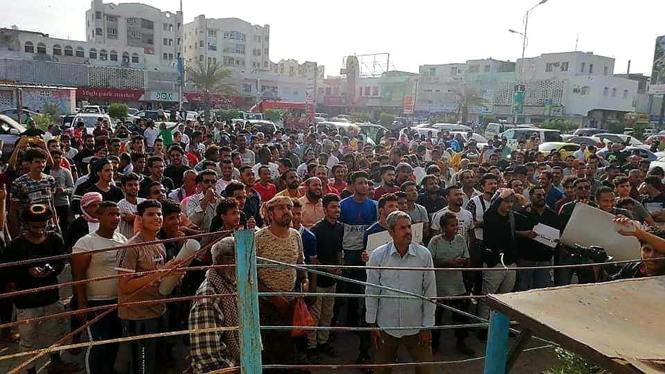 ورفع المحتجون لافتات تحمل التحالف بقيادة السعودية، والحكومة المعترف بها دوليًا، والمجلس الانتقالي الجنوبي المسؤولية الكاملة إزاء انهيار المنظومة الكهربائية في المدينة، وهتف المحتجون ضد تجاهل التحالف المستمر لأزمة الخدمات في المدينة.