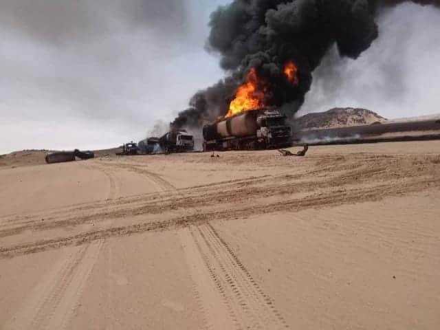 وأضاف المصدر وفقا لما نقلته صفحة الإعلام الأمني على فيسبوك، أن اعتداء "العصابة" تسبب أيضاً في "احتراق 4 قواطر بترول وديزل و2 دينات محملة بضائع تجارية".