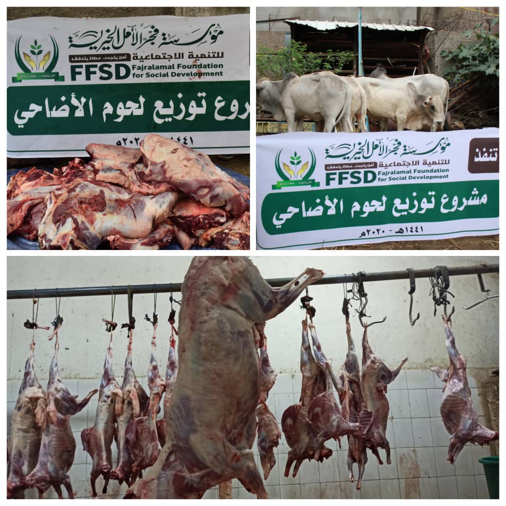 بتمويل مؤسسة مساعد بألمانيا ومؤسسة الفاتح التركية وفاعلي خير فجر الأمل توزع لحوم الأضاحي ل1600 أسرة بتعز