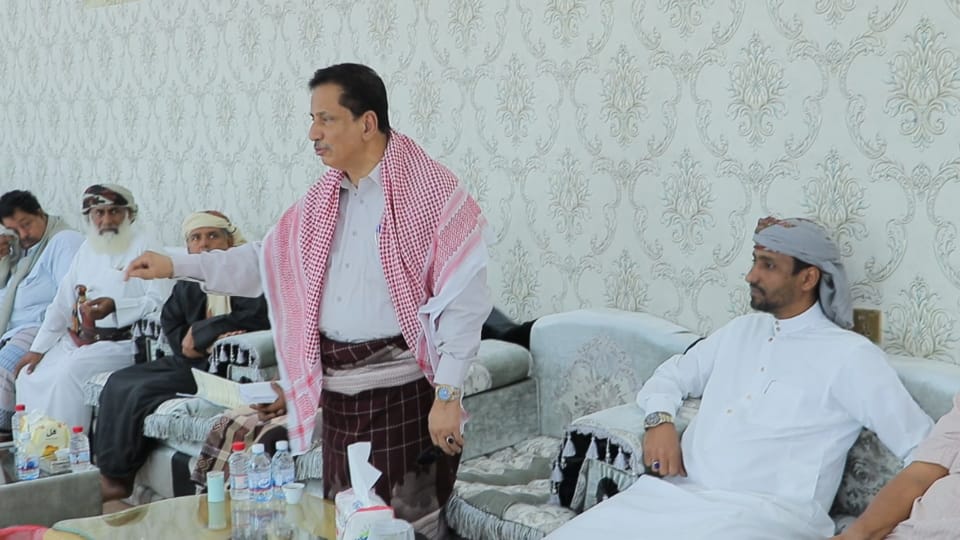 محافظة المهرة يدعو شيوخ وأعيان مديرية الغيضة إلى التعاون مع الأجهزة الأمنية في منع ظاهرة إطلاق النار في الأعراس والمناسبات