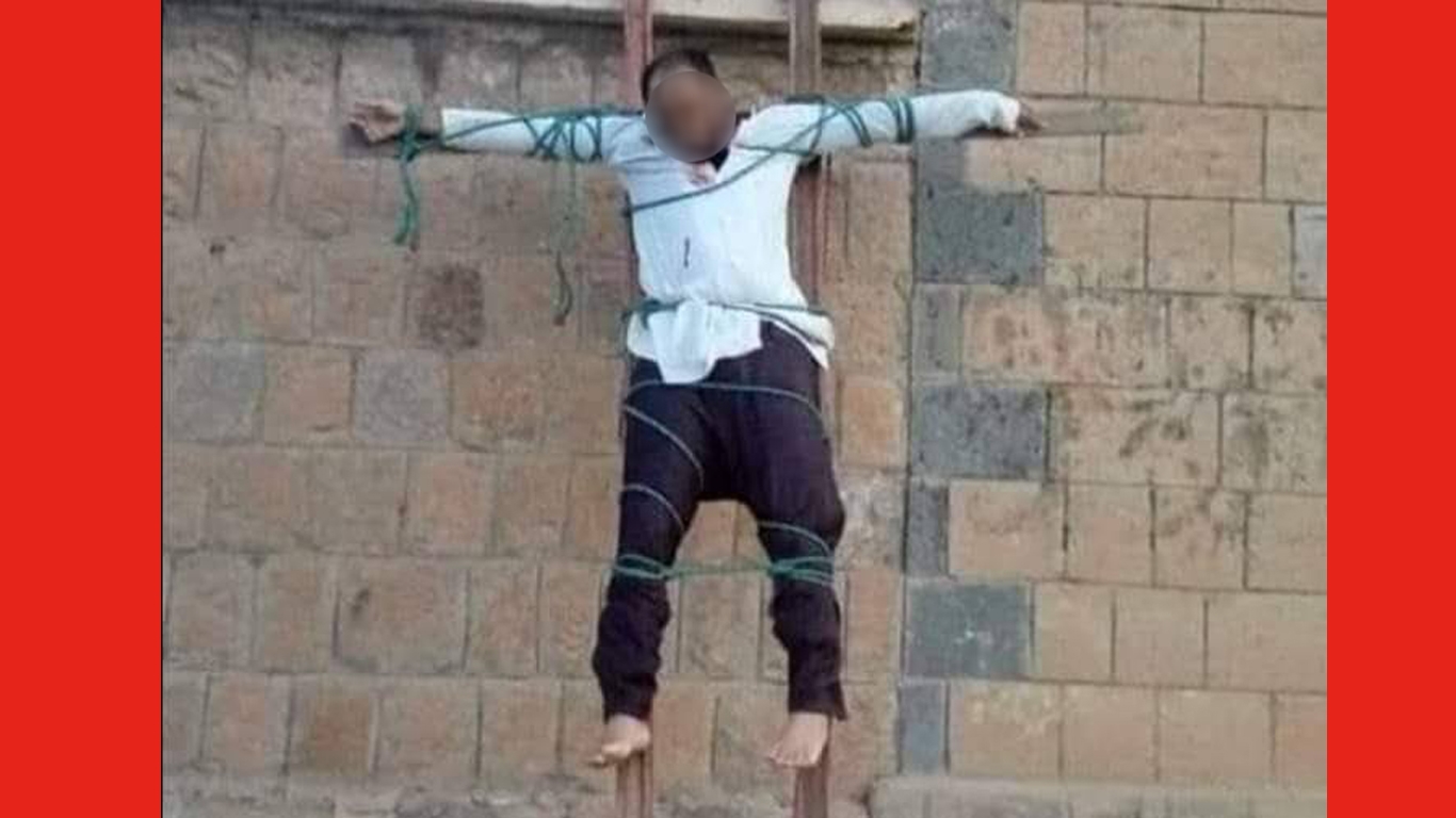 ونشر تنظيم "أنصار الشريعة" الفرع المحلي لتنظيم القاعدة صوراً لجثة لدكتور مطهر محمد يوسف اليوسفي معلقة على جدار مبنى في مركز المديرية.