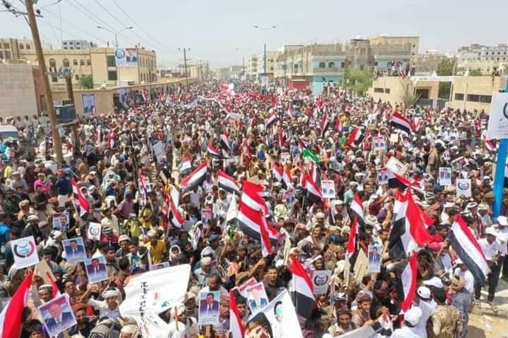 أكدت المظاهرات الحاشدة التي شهدتها محافظة شبوة، اليوم الأحد، دعمها الدائم للشرعية بقيادة الرئيس عبدربه منصور هادي، ورفضها للكيانات الانقلابية في اليمن شمالا وجنوبا، إضافة إلى الرفض القاطع لأي تطبيع مع الاحتلال الإسرائيلي.