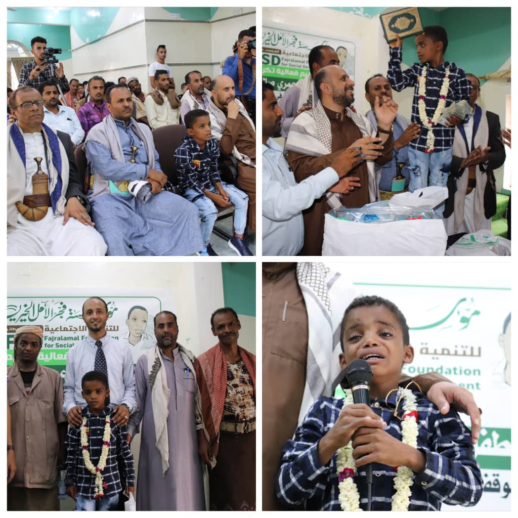 أقامت مؤسسة فجر الأمل الخيرية للتنمية الإجتماعية مساء اليوم فعالية تكريم للطفل / عمري صالح بن صالح