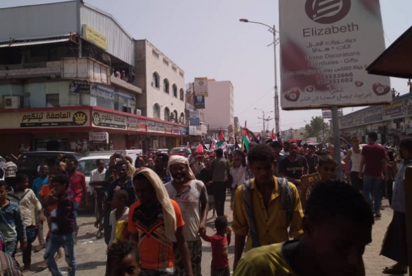 شهدت مدينة عدن، جنوب اليمن، اليوم الخميس، تظاهرة شعبية، نددت بالتطبيع الإماراتي مع اسرائيل وأعلنت تضامنها مع القضية الفلسطينية.