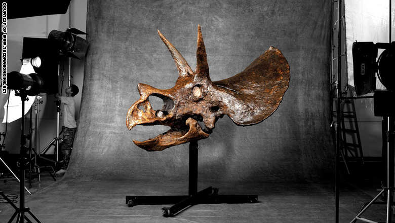 تعرض جمجمة ديناصور من نوع " Triceratops" لمزاد في هونغ كونغ بسعر يبدأ 1.8 مليون دولار وتعود الجمجمة لأكثر من 65 مليون عام.