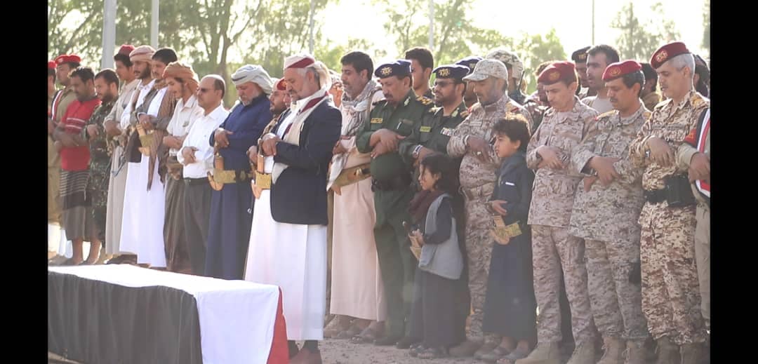 شُيِّع، اليوم في موكب جنائزي رسمي وشعبي مهيب جثمان اللواء ربيش بن علي وهبان العليي، نائب قائد قوة الإسناد بالمنطقة العسكرية السابعة، الذي استشهد وهو يؤدي واجبه الوطني والبطولي في قيادة المعارك ضد مليشيا الحوثي المتمردة المدعومة من إيران.
