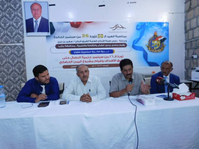 جاء ذلك خلال ندوة فكرية بمناسبة العيد ال58 لثورة 26 سبتمبر الخالدة، اقامها منتدى جذور برعاية رئيس هيئة الاركان العامة- الفريق الركن/ صغير بن عزيز.