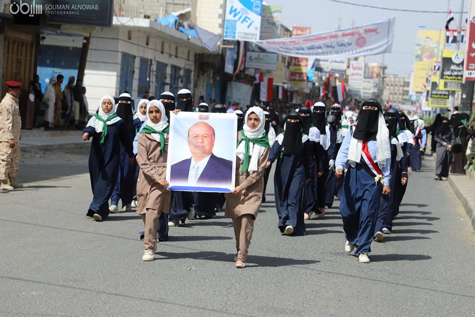 ورفع المشاركون لافتات وشعارات تمجّد ثورة سبتمبر المجيدة، وقيادتها ورموز نضالها، بالإضافة إلى صور القيادة السياسية ممثلة الرئيس عبدربه منصور هادي.