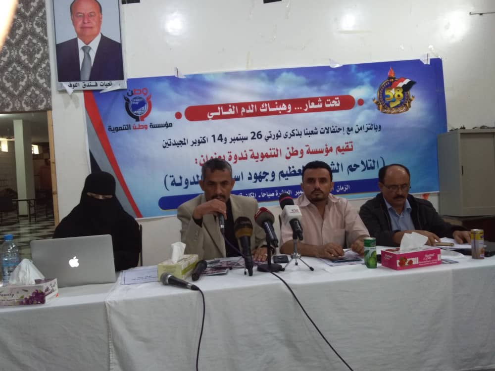 ندوة بمأرب تحت عنوان "التلاحم الشعبي العظيم": مؤسسة وطن: رأس المال لم يعد جبانا و 70% من دعم الجبهات تدفعه النساء