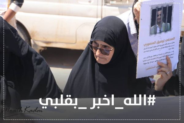 وكانت أم الصحفي المختطف المنصوري، قد ردت بتنهيدتها المؤجزة بـ "الله أخبر بقلبي" على سؤال لمراسل قناة سهيل المحلية، والذي أراد أن يعرف شعورها في استقبال خمسة صحفيين تم الإفراج عنهم، وتخليصهم من سجون المليشيا الحوثية، بينما ما زال ابنها توفيق رهن الاختطاف والتغييب عنها.
