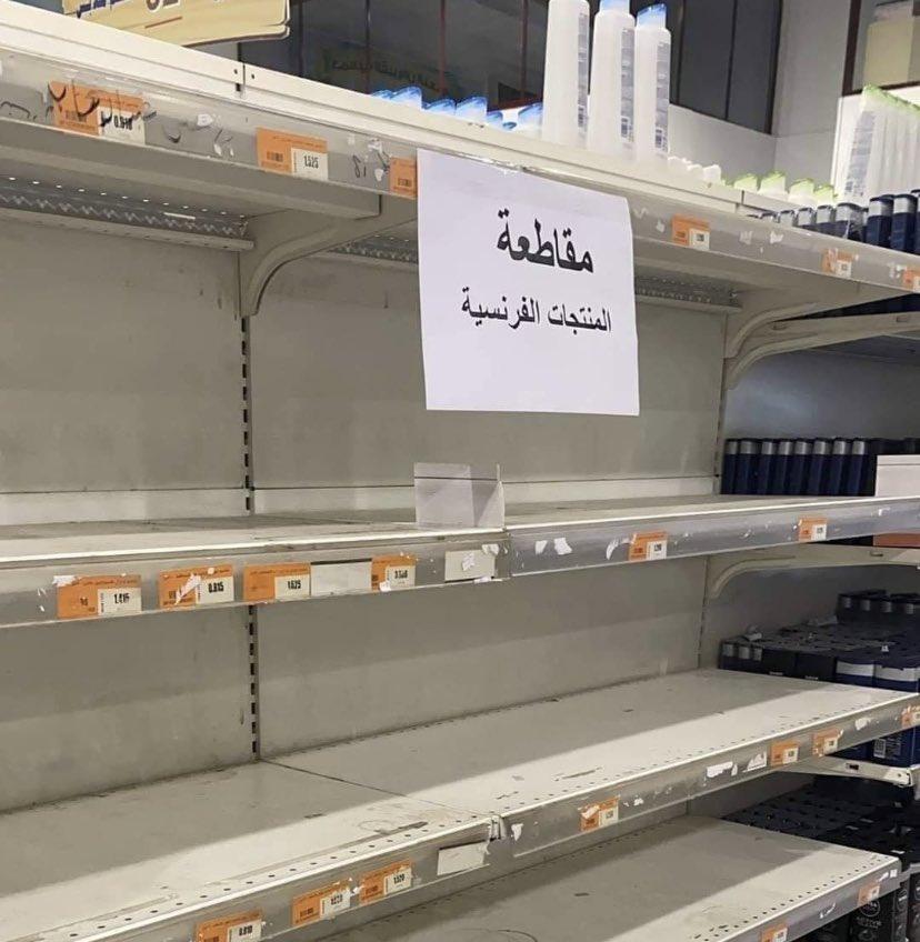 كما نشر المغردون قائمة بأسماء المنتجات الفرنسية لمقاطعتها، فيما تداول آخرون صورا لمتاجر فارغة في الكويت وعدد من الدول العربية مع لافتة بعنوان "مقاطعة المنتجات الفرنسية".