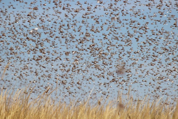 ويستهدف الجراد الصحراوي المحاصيل والنباتات التي تستخدم كعلف للماشية. وتأكل الجرادة الواحدة طعاما بحجم وزنها (2 جرام) في اليوم الواحد. ويمكن أن يكون هناك ما بين 40 - 80 مليون من الجراد البالغ في كل كيلومتر مربع.