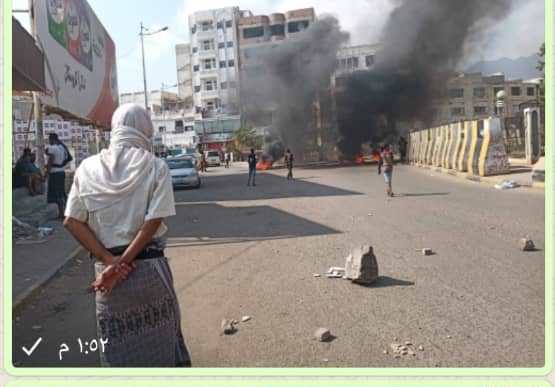 وأظهرت مجموعة من الصور العشرات من أبناء عدن يحرقون إطارات السيارات ويقطعون الشوارع ضمن احتجاجهم على تردي الأوضاع الخدمية في المحافظة.