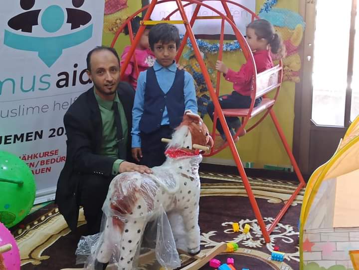 قطاع المرأة والطفل بمؤسسة فجر الأمل الخيرية للتنمية الاجتماعية يقيم اليوم المفتوح للأيتام والذي تمثل بتقديم الدعم النفسي والترفيهي وأفتتح صالة ألعاب للأيتام من أولاد الأمهات المستهدفات في برنامج الخياطة حرفتي عزتي .