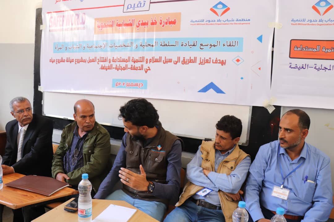 اللقاء الموسع لقيادة السلطة المحلية والشخصيات الإجتماعية والشباب والمرأة تحت شعار" تحسين آليات بناء السلام المجتمعي والتنمية المستدامة " وافتتاح العمل في صيانة مشروع مياه حي الدمغة _المجلية وكذلك الغيضه