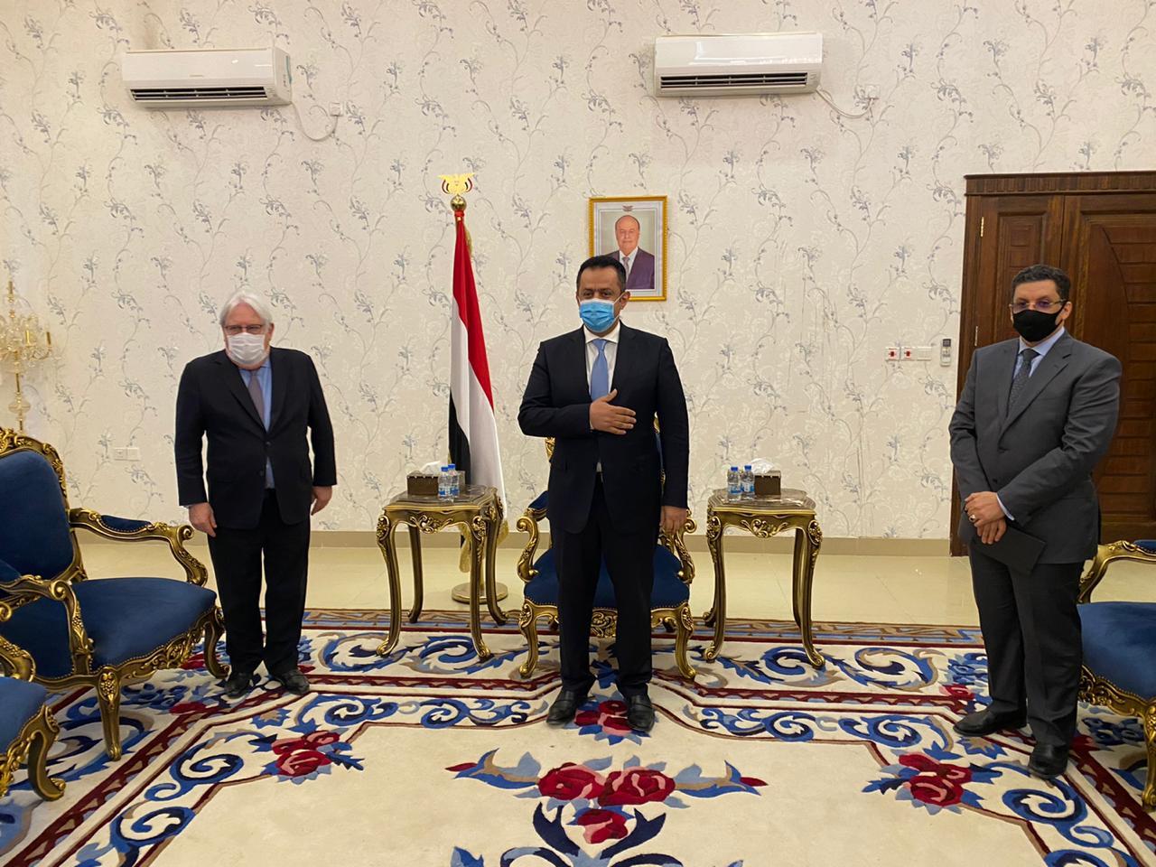 وقال غريفيث إنه ناقش آفاق العملية السياسية مع الحكومة "وشددت على انني ما زلت ملتزماً بدعم اليمن لإنهاء هذا الصراع بشكل شامل ومستدام من خلال التسوية السياسية المتفاوض عليها".