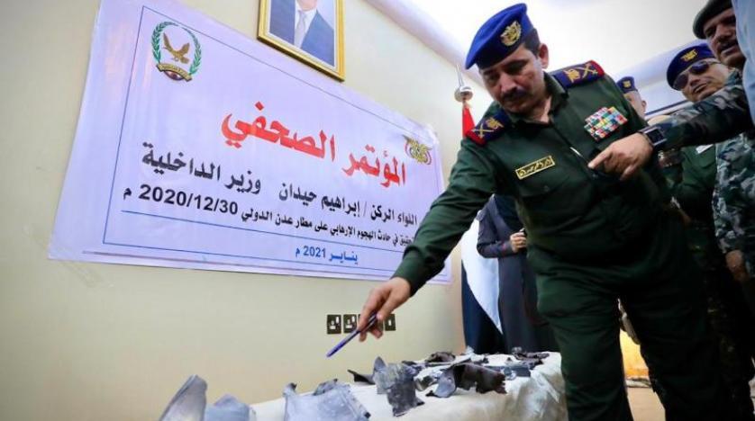 قال وزير الداخلية اليمني اللواء الركن إبراهيم حيدان رئيس لجنة التحقيق في حادث الهجوم على مطار عدن إن الحوثيين استهدفوا مطار عدن بصواريخ باليستية، متهماً خبراء إيرانيين ولبنانيين بالوقوف خلف نظام إطلاق الصواريخ.
