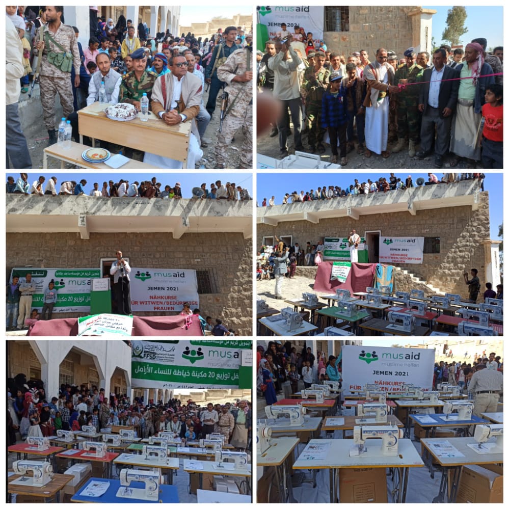 فجر الامل توزع 20 مكينة خياطة لأمهات الأيتام بمديرية جبل حبشي