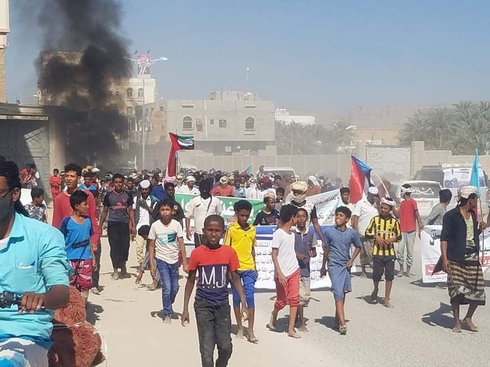 وشهدت مدينة سيئون اليوم الإثنين مظاهرة منددة بالزيادة الجديدة في أسعار المشتقات النفطية وحسب مراسل المصدر أونلاين فقد رفع محتجون أعلام وشعارات المجلس الانتقالي المطالب بالانفصال والمدعوم من الإمارات.