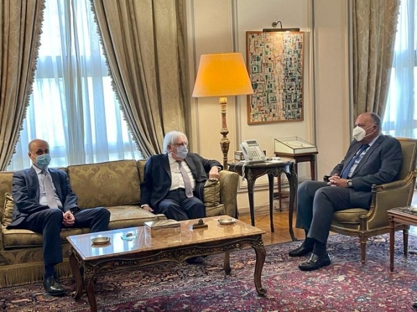 وبحث غريفيث، اليوم الأحد، مع وزير الخارجية المصري سامح شكري، تطورات الأزمة في اليمن، ودعم الجهود السياسية للوصول إلى حل يُنهي الصراع في اليمن.