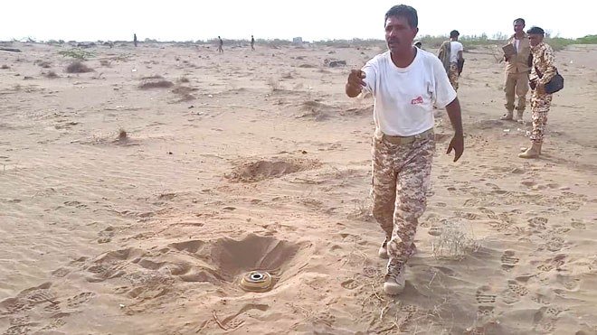 ولم تحمل البعثة أي طرف المسؤولية عن زراعة الألغام، لكن الحكومة اليمنية تتهم الحوثيين بزراعة نحو مليون لغم في المناطق التي تسيطر عليها، بما في ذلك مناطق بمحافظة "الحديدة" غربي اليمن.