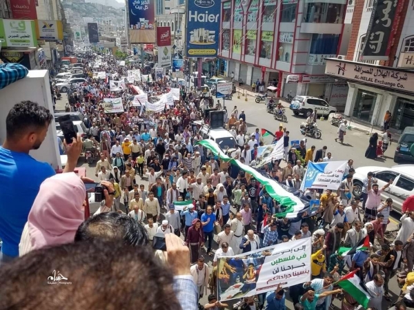 وشهدت خلال الأيام الماضية عدة مدن يمنية مظاهرات شعبية تضامنا مع الشعب الفلسطيني الذي يتعرض لعدوان غاشم من قبل الاحتلال الإسرائيلي لليوم العاشر على التوالي.