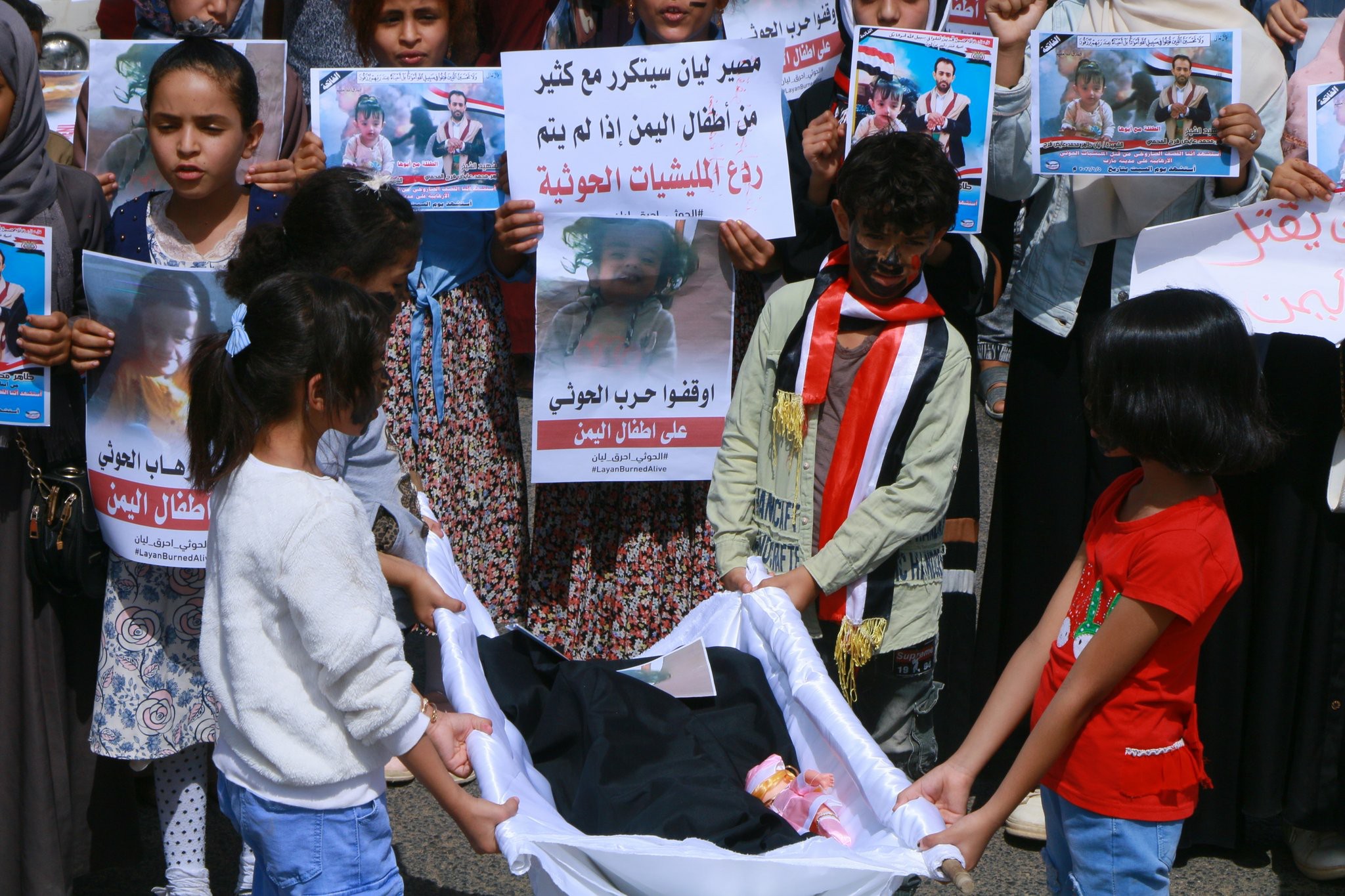 وحمل المشيعون جثمان الطفلة "ليان" إلى مقبرة الشهداء بمارب، وهم يرددون شعارات تندد بجرائم ميليشيا الحوثي ضد الأطفال والمدنيين في محافظة مارب وبقية المناطق اليمنية.