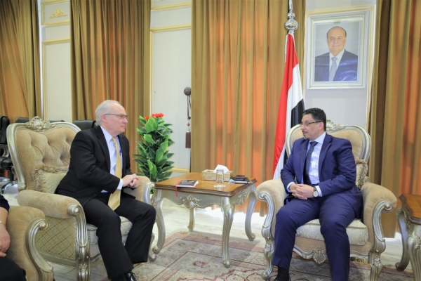 جاء ذلك خلال لقائه مبعوث الولايات المتحدة الأمريكية الخاص إلى اليمن تيم ليندر كينغ، لبحث مستجدات عملية السلام في ظل استمرار تعنت المليشيات الحوثية ورفضها لكافة الجهود الهادفة الى تخفيف المعاناة الإنسانية التي تشهدها اليمن، وفق وكالة الأنباء اليمنية "سبأ".