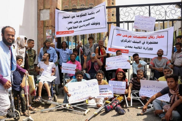 وخلال الأيام تظاهر العشرات من جرحى تعز للتنديد بالإهمال الحكومي لمعانتهم، لافتين إلى أن هناك مليار ريال مخصصة لعلاجهم محتجزة من قبل وزارة المالية والبنك المركزي اليمني في عدن منذ أكثر من سنتين.