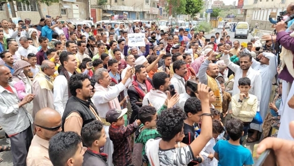 وطالب المشاركون في التظاهرة الحكومة اليمنية، بسرعة اتخاذ الاجراءات اللازمة للحد من تدهور العملة وارتفاع الأسعار، بعد أن تجاوز سعر الدولار الواحد 1000 ريال في انهيار تاريخي للعملة المحلية.