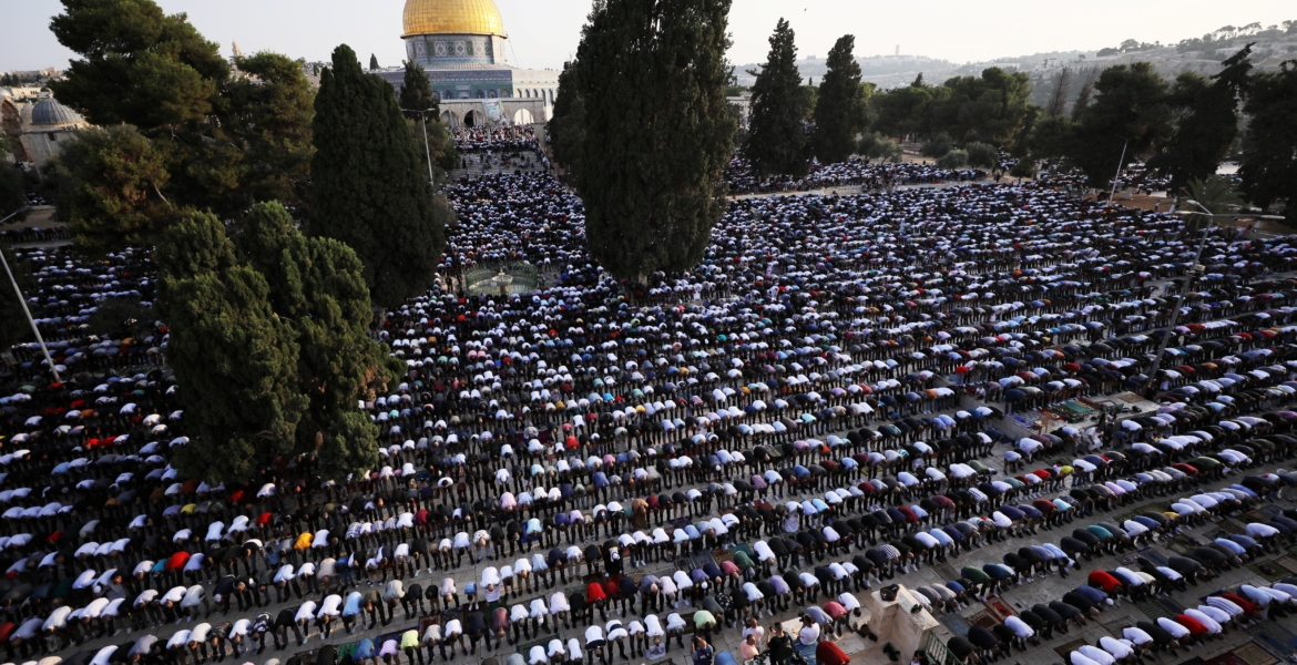 وفي الأقصى توافد الآلاف من الفلسطينيين على صلاة عيد الأضحى المبارك في المسجد الأقصى، وسط إجراءات أمنية مشددة من قبل سلطات الاحتلال الإسرائيلي التي تواصل منذ رمضان الماضي تضييقها عليهم.