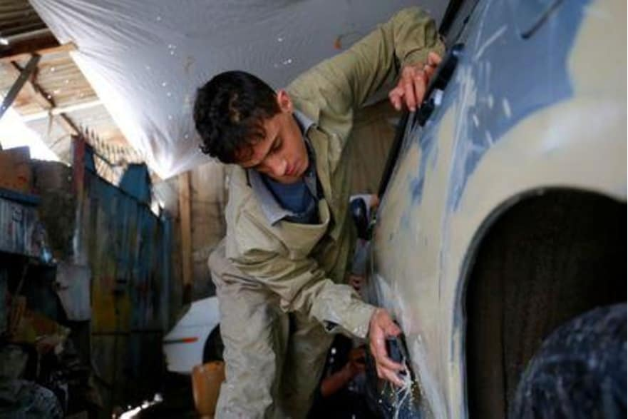 بدأ زكريا نجيب (16 عاما) العمل في ورشة للمعادن في صنعاء قبل عامين.