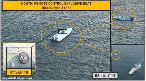 وكثيراً ما اعترضت البحرية الأميركية، وتحالف دعم الشرعية في اليمن بقيادة السعودية، قوارب وسفناً إيرانية وأخرى مجهولة المصدر تحمل أسلحة ومتفجرات، لكن اليمن يمتلك شريطاً ساحلياً كبيراً تصعب مراقبته بشكل دقيق، ولذلك تصل الأسلحة بطرق عدة إلى البلاد، أغلبها عن طريق البحر، وميناء الحديدة المطل على البحر الأحمر، الذي يسيطر عليه الحوثيون.