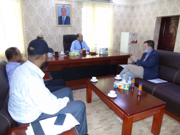 بحت وزير الشؤون القانونية وحقوق الإنسان أحمد عرمان، اليوم، في عدن، مع ممثل مكتب مفوضية الأمم المتحدة السامية لحقوق الإنسان في اليمن رينو ديتال، أوجه التعاون لتأهيل السجون اليمنية ومراكز الاحتجاز.