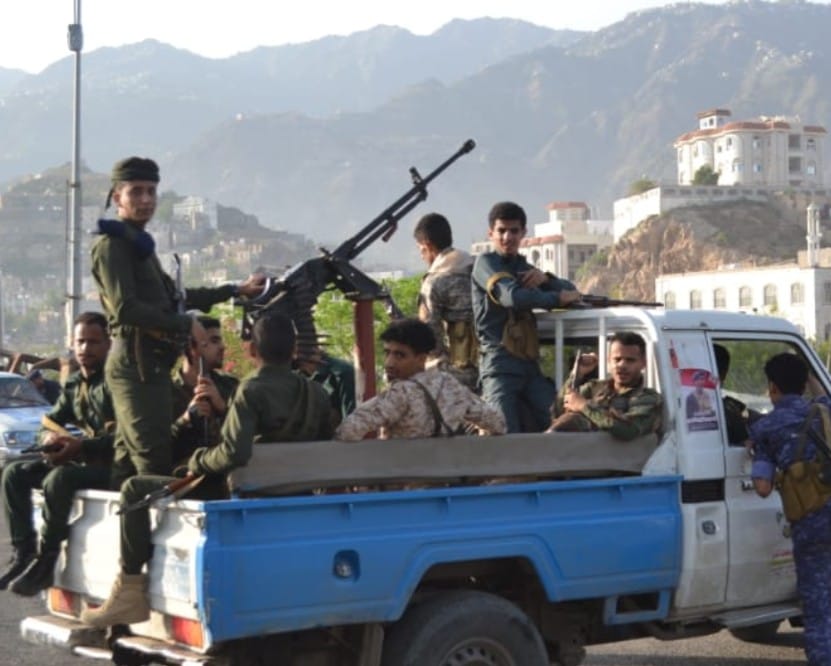وتتكون الحملة من 20 طقم من قيادة محور تعز وادارة شرطة المحافظة والشرطة العسكرية بقيادة رئيس اركان المحور باشرت عملها وتمكنت من السيطرة على مبنى المنشاءات وتأمين المواطنين.