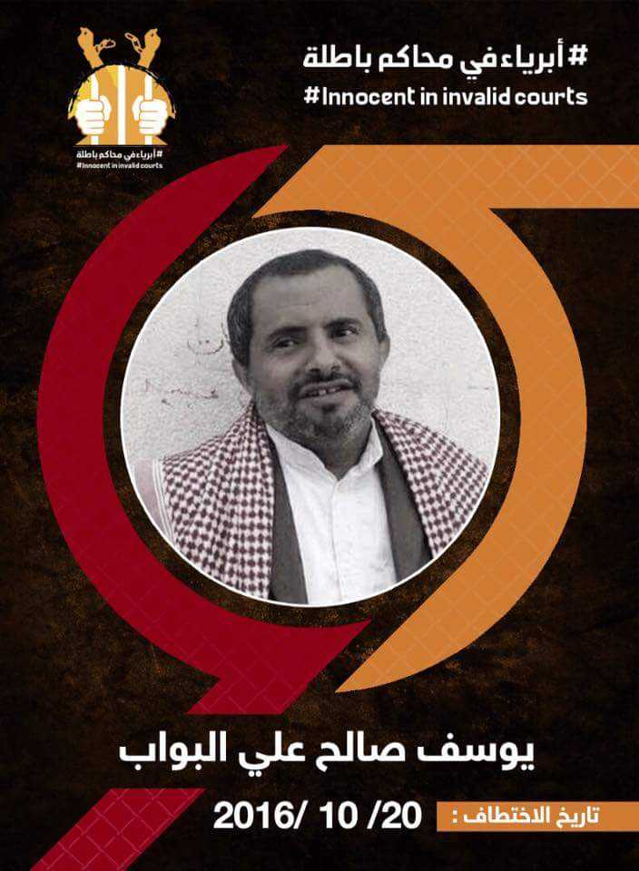يتلقى البواب وهو أستاذ "علم اللسانيات" في جامعة صنعاء، والمؤلف لـ 11 كتابا، ومشرف على 30 بحثا علميا، صنوف التعذيب في سجون ميليشيا الحوثي منذ اختطافه في 20 أكتوبر 2016، بعد عودته من صلاة العشاء في جامع الدرة بمنطقة سواد حنش وسط صنعاء.