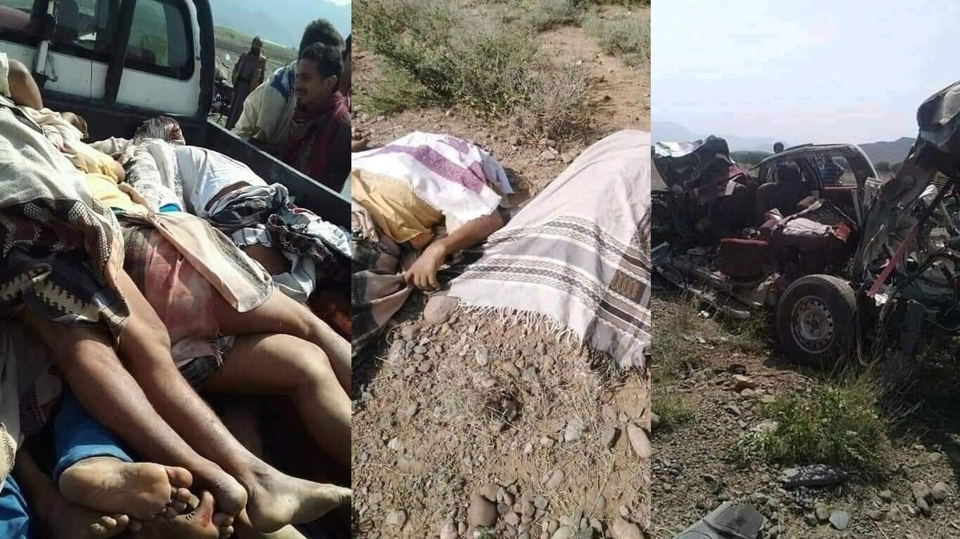 وقال شهود عيان إن طقم حوثي اصطدم بسيارة نقل ركاب، في منطقة "المنطاشة" بمديرية جبل راس على الخط الرابط بين المحافظتين، ما أدى الى مقتل وإصابة خمسة عشر شخصا على الأقل.