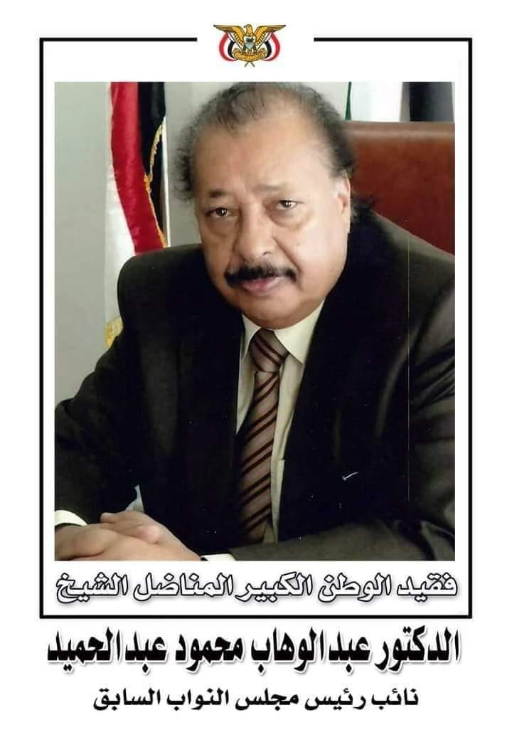 بعث الشيخ صادق بن عبدالله بن حسين الأحمر برقية عزاء ومواساة إلى الشيخ رامي بن عبدالوهاب محمود وإخوانه وكافة آل محمود الكرام وذلك في وفاة المناضل الكبير الدكتور عبدالوهاب محمود عبدالحميد نائب رئيس مجلس النواب الأسبق بعد حياة حافلة بالعطاء الوطني والقومي ومعاناة طويلة مع المرض.