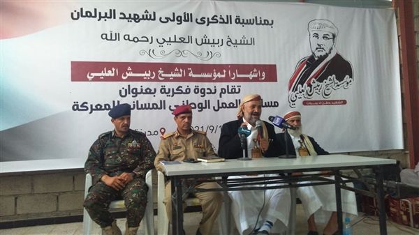 أقيمت اليوم الأربعاء في مدينة مأرب، فعالية إحياء الذكرى الأولى لشهيد البرلمان اليمني الشيخ ربيش العلي، التي حضرها عدد من قيادات الجيش والمقاومة، ومحبي الشهيد.