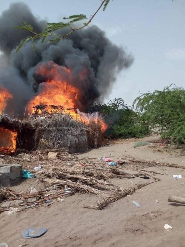 ووفقا للنشطاء المحليين، تدمرت منازل النازحين (أشرف محمد باشه، محمد عبد الرحمن باشه، صغير عايش باشه، عبده محمد صغير مقلا، علي محمد سالم احدب).