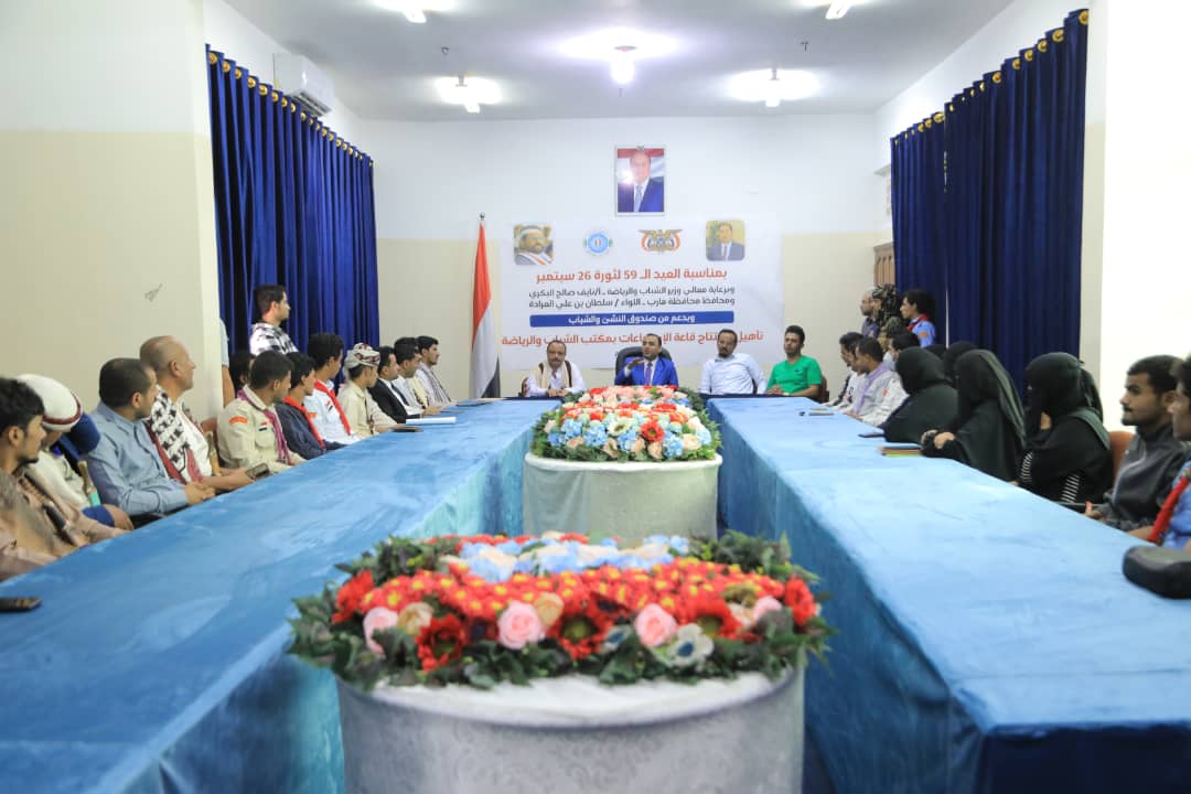 وكيل وزارة الشباب لمع يفتتح قاعة للاجتماعات والتدريب بمكتب الشباب بمأرب