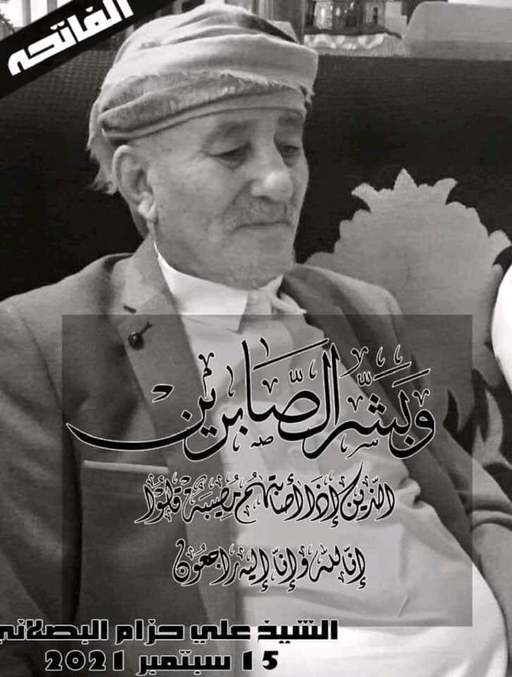 بعث الشيخ صادق بن عبدالله بن حسين الأحمر برقية عزاء ومواساة إلى الشيخ فهد علي حزام البصلاني وكافة إخوانه وذلك في وفاة الشيخ المناضل علي حزام البصلاني بعد حياة حافلة بالعطاء الوطني.
