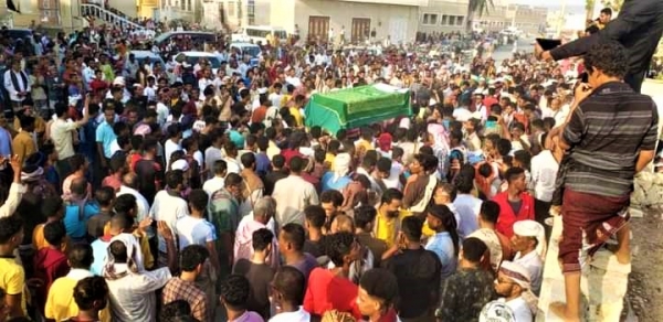 وفي وقت سابق اليوم، شيع المئات من أبناء مديرية الشحر، جثمان أحد قتلى الاحتجاجات التي شهدتها محافظة حضرموت شرقي.