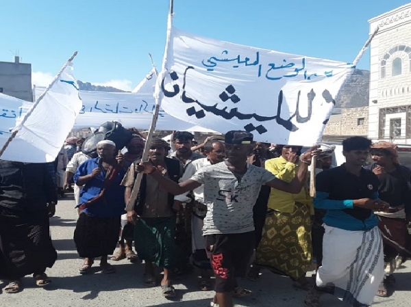 وكانت مسيرة حاشدة مماثلة خرجت الأحد الماضي في المحافظة، تنديداً بتدهور الأوضاع الخدمية في ظل سيطرة مليشيا الانتقالي المدعومة إماراتياً على المحافظة.